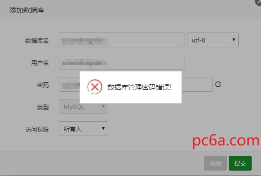 错误类型:数据库管理密码错误!