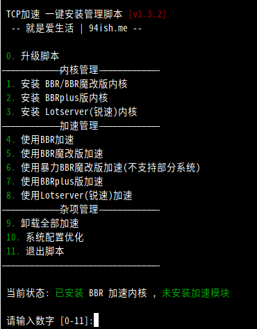 BBR puls脚本 发表于 2023-05-22 更新于 2025-06-09 分类于 _A8-工具 , BBR BBR puls脚本 – 就是爱生活 | 94ish.me – wget -N --no-check-certificate "https://raw.githubusercontent.com/chiakge/Linux-NetSpeed/master/tcp.sh" && chmod +x tcp.sh && ./tcp.sh 重启之后不用在下载脚本,直接使用 # 启动脚本./tcp.sh# 在[4 - 8]中选你要开的加速。# 1、安装 BBR/BBR魔改版内核对应4,5,6(原版,魔改,暴力魔改)# 2、安装BBRplus版内核,对应7(plus)# 3、安装Lotserver(锐速)内核,对应8(锐速)# 4、开启后在使用 “./tcp.sh”,显示开启成功,则启动成功!
