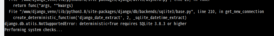 django.db.utils.NotSupportedError: deterministic=True requires SQLite 3.8.3 or higher