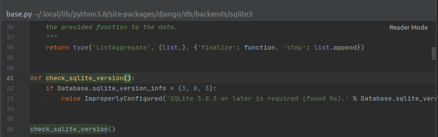 将django_venv/lib/python3.8/site-packages/django/db/backends/sqlite3/base.py 下的check_sqlite_version()函数禁用