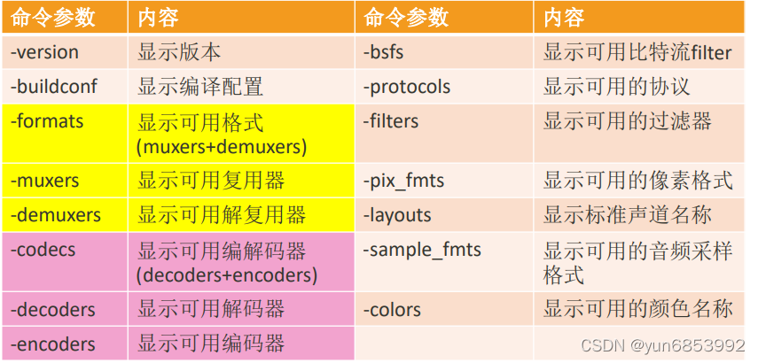 3、ffmpeg分类查询命令: